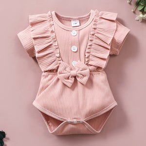 Baby Girls Ruffle Short Sleeve Bowknot Romper, Bodysuit Onesie Baby Clothes Baby Layette Sets