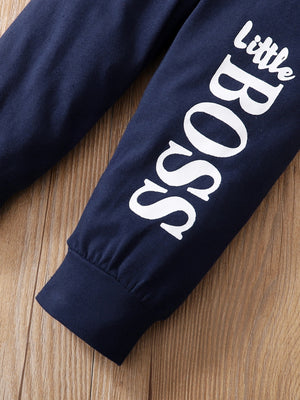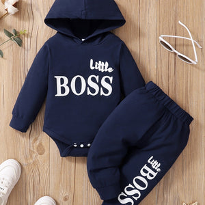 2pcs Baby Boys Clothes "BOSS" Hooded Bodysuit + Matching Pants Cotton Romper Onesie Bottoms Trousers Set Spring Fall