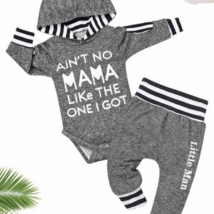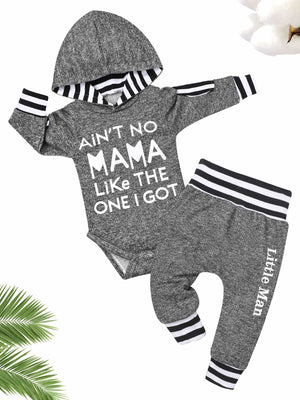 Baby Boys Casual Striped Letter Print Hooded Romper & Pants For Winter