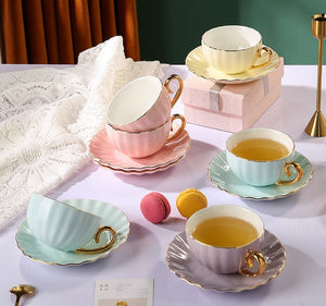 Unique Tea Cups and Saucers in Gift Box as Birthday Gift, Elegant Macaroon Ceramic Coffee Cups, Beautiful British Tea Cups, Creative Bone China Porcelain Tea Cup Set