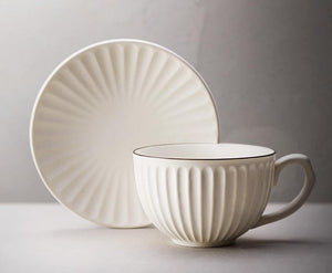 Each set includes 1* coffee cup and 1 saucer. 10.8 ounce (320 ml) capacity ceramic coffee mugs.