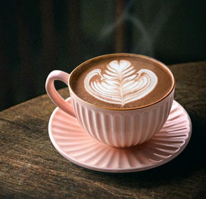 White Pottery Coffee Cups. Cappuccino Coffee Mug. Latte Coffee Cup. Pink Tea Cup. Ceramic Coffee Cup. Coffee Cup and Saucer Set