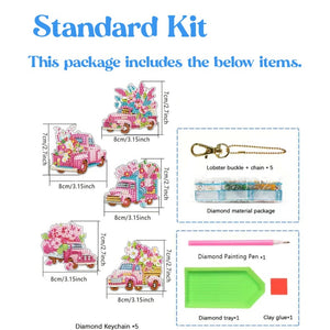 DIY 5 Farm Trucks Filled With Flowers, 5D Ornaments/Keychains Diamond Painting Kit, Includes Tools and Rhinestones