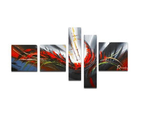 Canvas Painting. Abstract Lines. Red Color Art. Large Wall Art. Abstract Painting. Huge Wall Art. Acrylic Art. 5 Piece Wall Painting