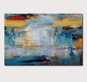 Home Acrylic Paintings for Living Room, Large Simple Modern Art, Blue Abstract Acrylic Painting, Contemporary Wall Art Paintings