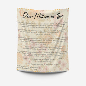A blanket for a mother-in-law is a thoughtful and meaningful gift designed to show appreciation and warmth towards your spouse's mother. It is a token of love and gratitude that aims to provide comfort and a sense of coziness.