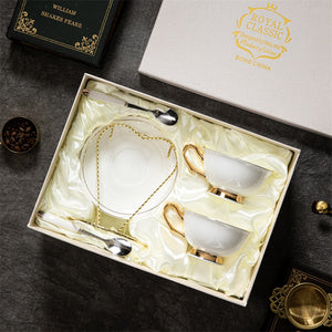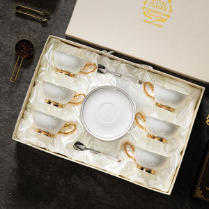 (Fine porcelain teacups (made of Limoges porcelain or Chinese porcelain heated in an oven on a kaolin clay base) are a delicious way to enjoy tea time. These cups, all with handles, were paired with saucers in a set, and they featured hand-painted decoration and gold or silver motifs, especially on the rim and handle of the cups for lining.