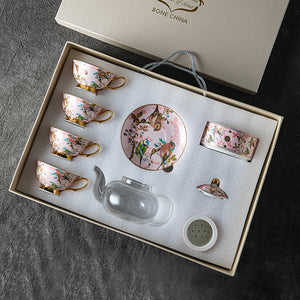 (Fine porcelain teacups (made of Limoges porcelain or Chinese porcelain heated in an oven on a kaolin clay base) are a delicious way to enjoy tea time. These cups, all with handles, were paired with saucers in a set, and they featured hand-painted decoration and gold or silver motifs, especially on the rim and handle of the cups for lining.