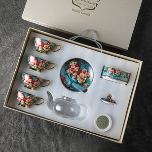 (Fine porcelain teacups (made of Limoges porcelain or Chinese porcelain heated in an oven on a kaolin clay base) are a delicious way to enjoy tea time. These cups, all with handles, were paired with saucers in a set, and they featured hand-painted decoration and gold or silver motifs, especially on the rim and handle of the cups for lining.