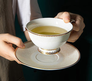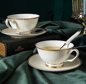Bone China Porcelain Coffee Cup Set, White Ceramic Cups, Elegant British Ceramic Coffee Cups, Unique Tea Cup and Saucer in Gift Box