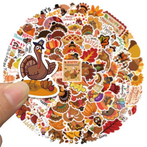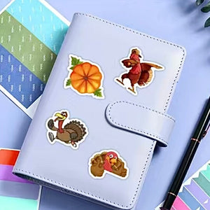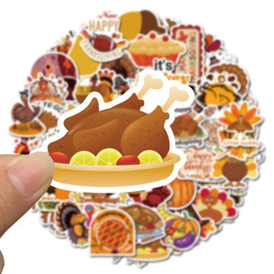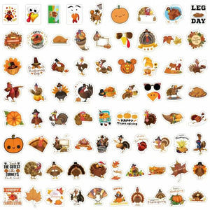 Home 60 Thanksgiving Stickers With Cartoon Turkeys And Traditional Foods, High Quality Decal Stickers