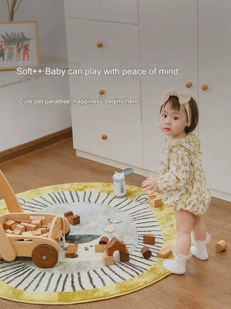 6. Perfect for Bedrooms, Playrooms, and More: Whether placed next to a bed, used as a central play area in a playroom, or laid out in an entryway to welcome little feet, this round blanket adds a touch of fun and warmth to any space. Its charming design and practical features make it a versatile addition to your home.