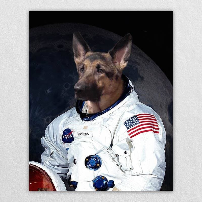 Home Dog Astronaut Painting Funny Custom Pet Portraits