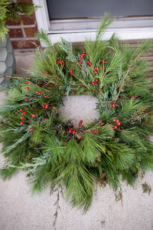 Discover the rustic elegance of our Natural Fresh-Cut Christmas Wreath, meticulously crafted to infuse your home with the essence of the holiday season. Handcrafted from premium fresh-cut foliage, this wreath captures the beauty of nature and brings a touch of tradition to your holiday decor.