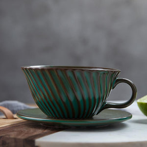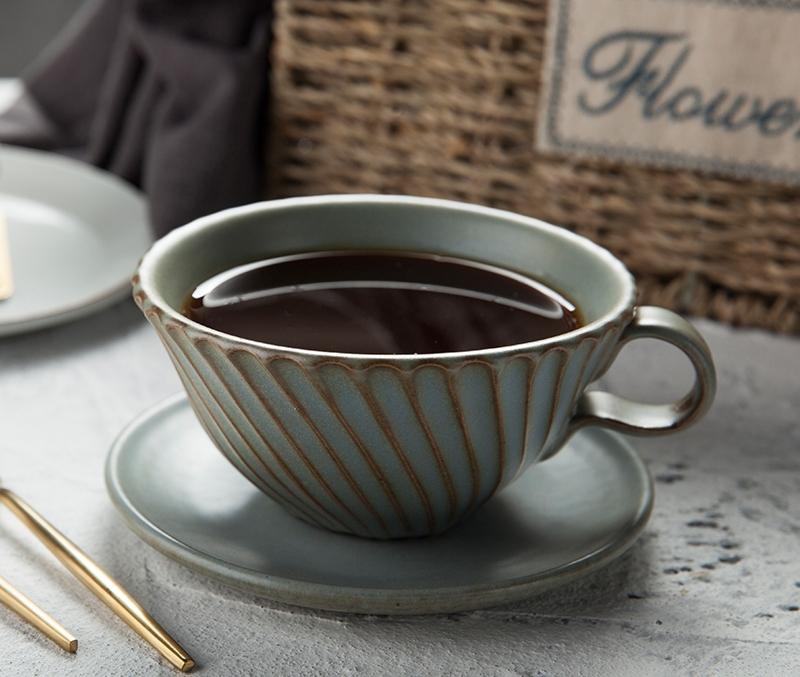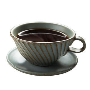 Gray Pottery Coffee Cups. Cappuccino Coffee Mug. Latte Coffee Cup.  Breakfast Milk Cup. Ceramic Coffee Cup. Coffee Cup and Saucer Set