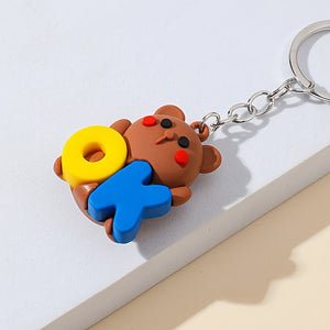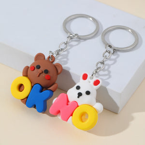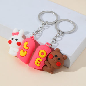 2pcs/set 3D Anime Creative Couple Bear Rabbit Keychain Bag Car Key Accessories Gift