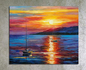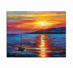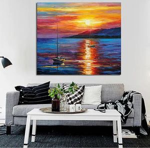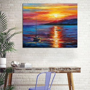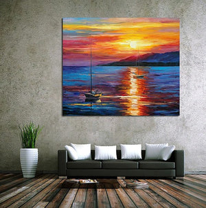 Boat Paintings. Sunrise Painting. Simple Modern Art. Paintings for Living Room. landscape Canvas Painting. Hand Painted Canvas Painting