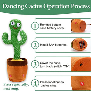 Talking Cactus Toy, Dancing Cactus Baby Toy With Lighting, Singing Mimicking Cactus Baby Toys Repeat What You Say Cactus, Recording 15 Seconds