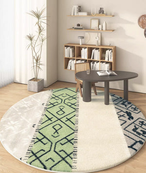 Unique Circular Rugs under Sofa. Abstract Contemporary Round Rugs. Modern Rugs for Dining Room. Geometric Modern Rugs for Bedroom