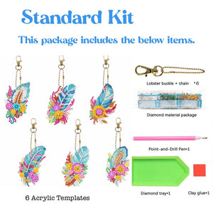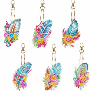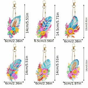 Home Decorate 6 Beautiful Feather Keychains/Ornaments Yourself, 5D Diamond Painting Kit, Includes Tools and Rhinestones