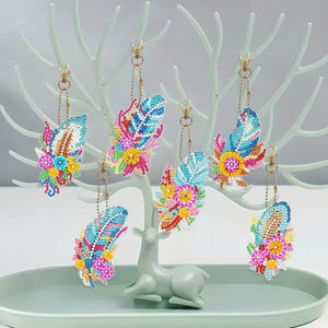 Decorate 6 Beautiful Feather Keychains/Ornaments Yourself, 5D Diamond Painting Kit, Includes Tools and Rhinestones