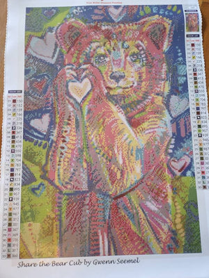 True Artist Diamond Painting proudly presents Share the Bear Cub by customer-favorite artist Gwenn Seemel. Many of you have asked for a follow-up to Red Fox, Emperor Penguins and White-throated Sparrows and this kit really delivers. Kit comes in square drills, all in resealable baggies. The painting is composed of 33 colors in all on a 40cmx 60cm canvas.