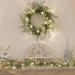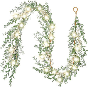 The timer function allows you to set the lights to turn on and off automatically, ensuring your decorations are always bright when needed. Whether draped along a mantel, staircase railing, or used as a festive table centerpiece, this garland brings the beauty of winter indoors.