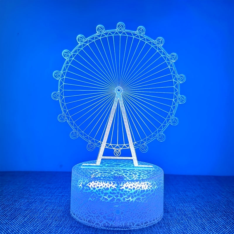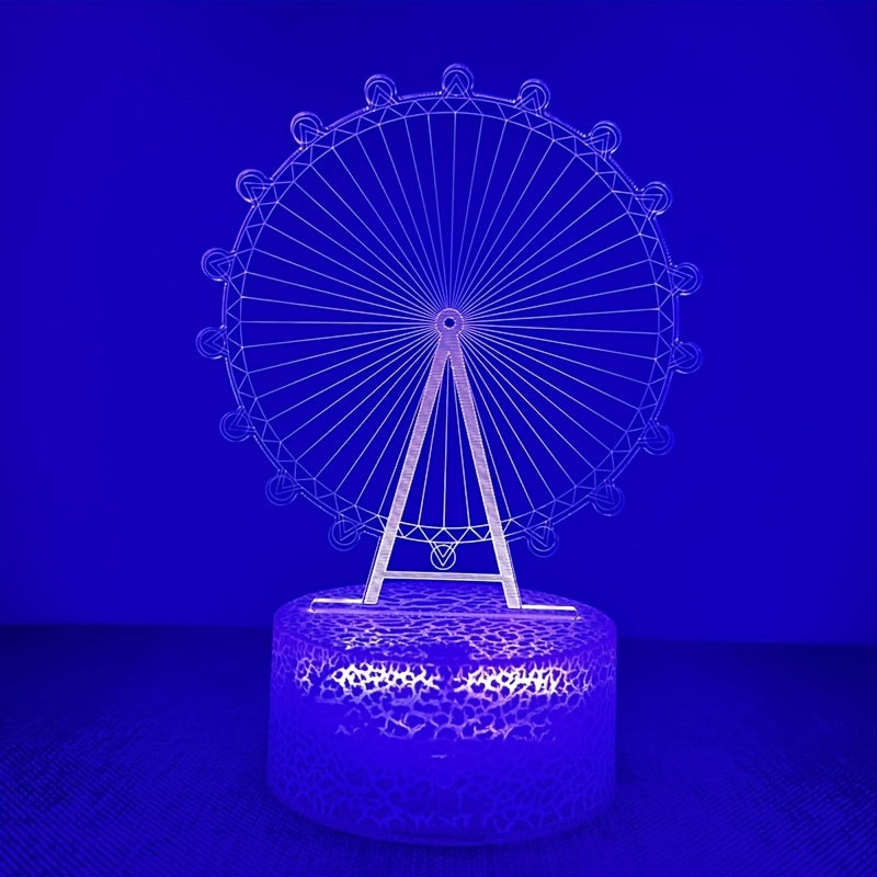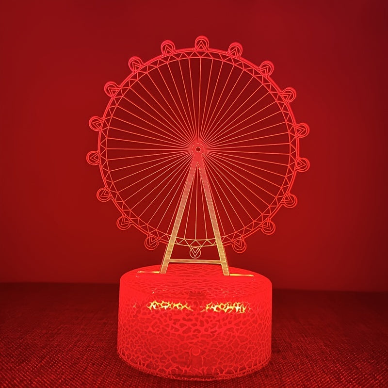 1pc Creative 3D Night Light, Ferris Wheel Shaped USB Atmosphere Desk Lamp With Touch Button, 6.88"x4.96"