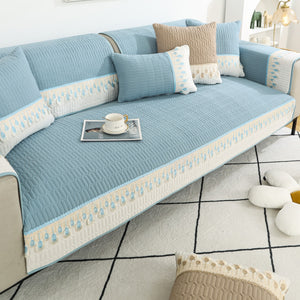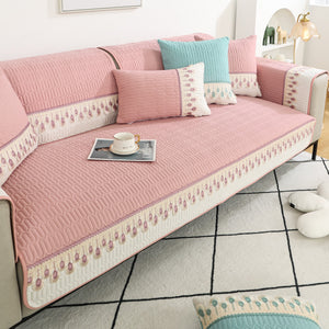 1pc Feather Embroidery Quilted Couch Covers, Sofa Couch Cover, Backrest And Armrest Not Included