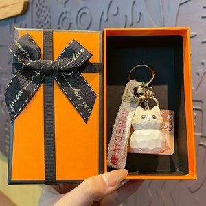 1pc Key Chain, Wood Carved Puppet Cat Key Chain