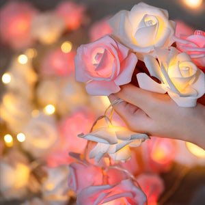 1pc LED Foam Rose Flower String Light, Small Lantern, Powered By Battery Box, Festive Decoration