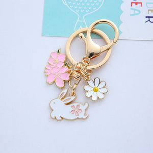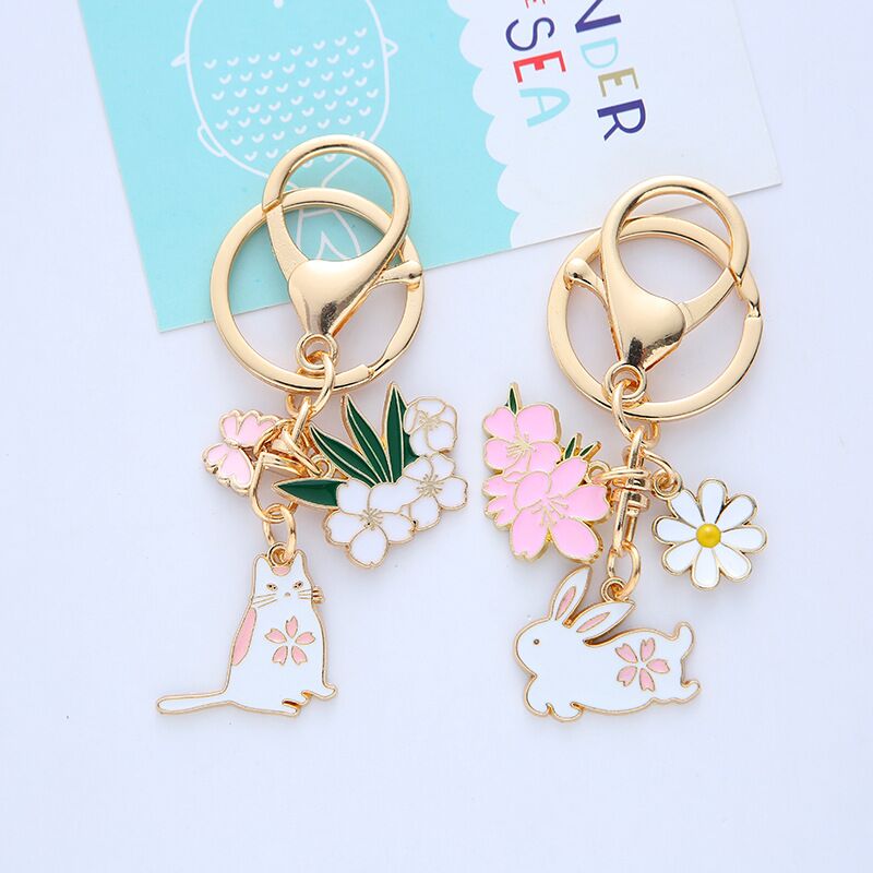 1pc Men&Women's Creative Cartoon Cute Sakura Rabbit Cat Metal Fashionable Keychain For Birthday Gift Holiday Gift