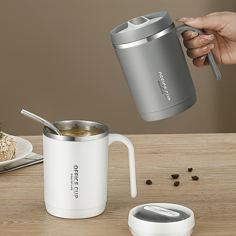 Home 1pc Stainless Steel Cups With Lid, 16 Oz 304 Stainless Steel Tumblers Durable Coffee Mug With Splash Proof Sliding Lid, Drink With Lid Open, Plastic Housing And Lid, Straw Not Included