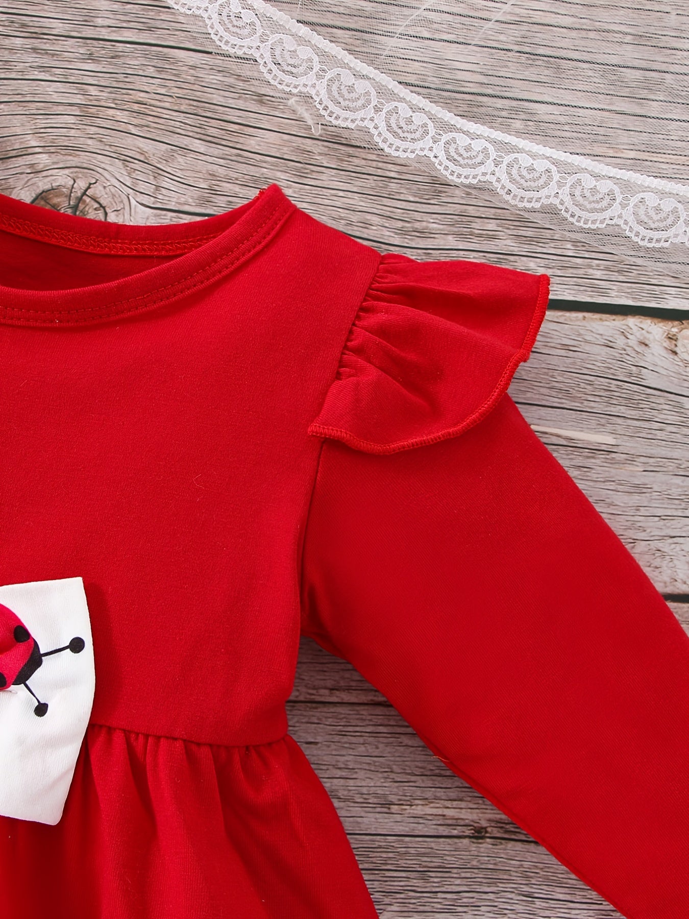 2pcs/Set Baby Girls Flying Sleeve Long Sleeve Bow Top & Cartoon Ladybug Print Pants Baby Clothes