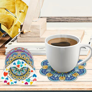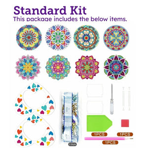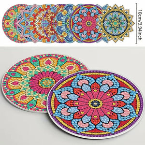 8 DIY Mandela Coasters With Unique Shapes In Green & Blue, 5D Diamond Painting Kit, Tools and Rhinestones Included