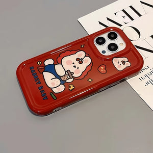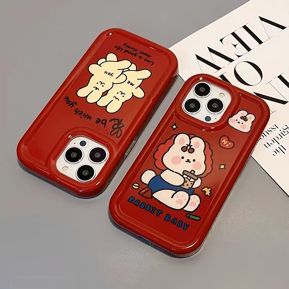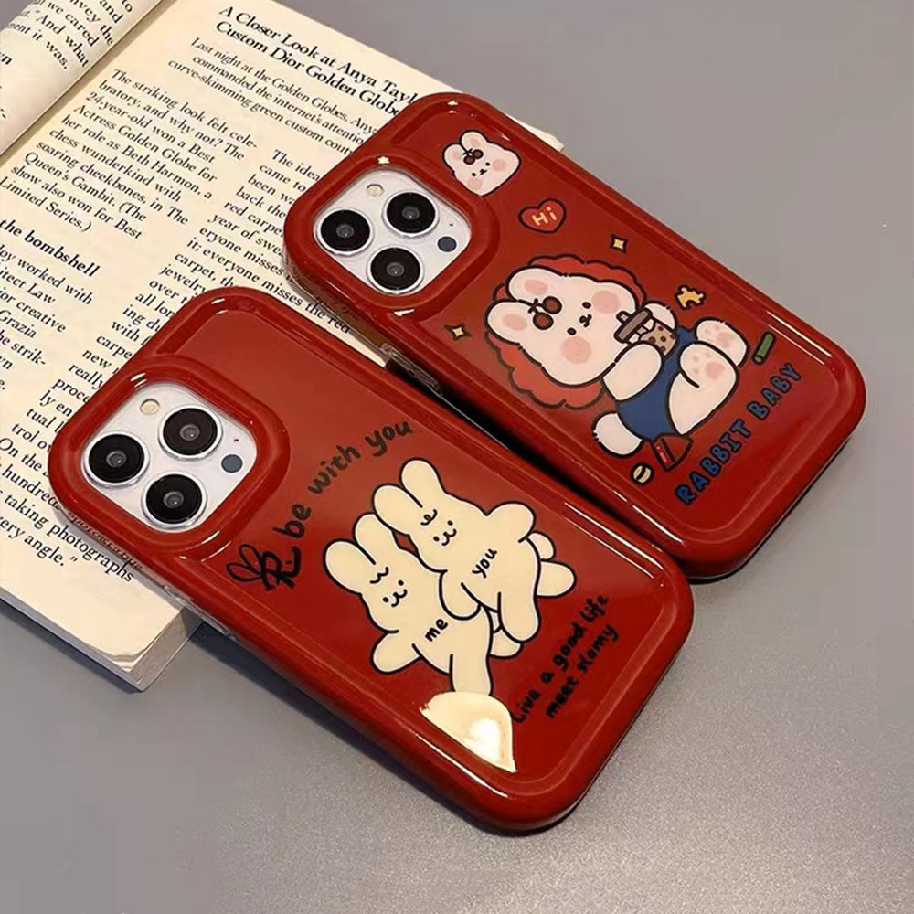 A Group Of Two Cute Red Rabbit Bear Lovers Mobile Phone Case