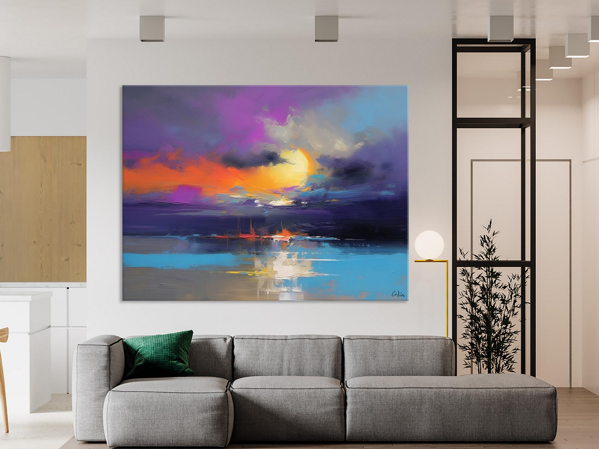 Sunset Painting. Large Landscape Painting for Living Room. Abstract Landscape Painting. Bedroom Wall Art Ideas. Modern Paintings for Dining Room