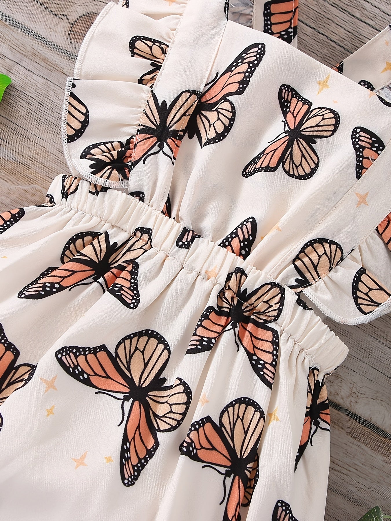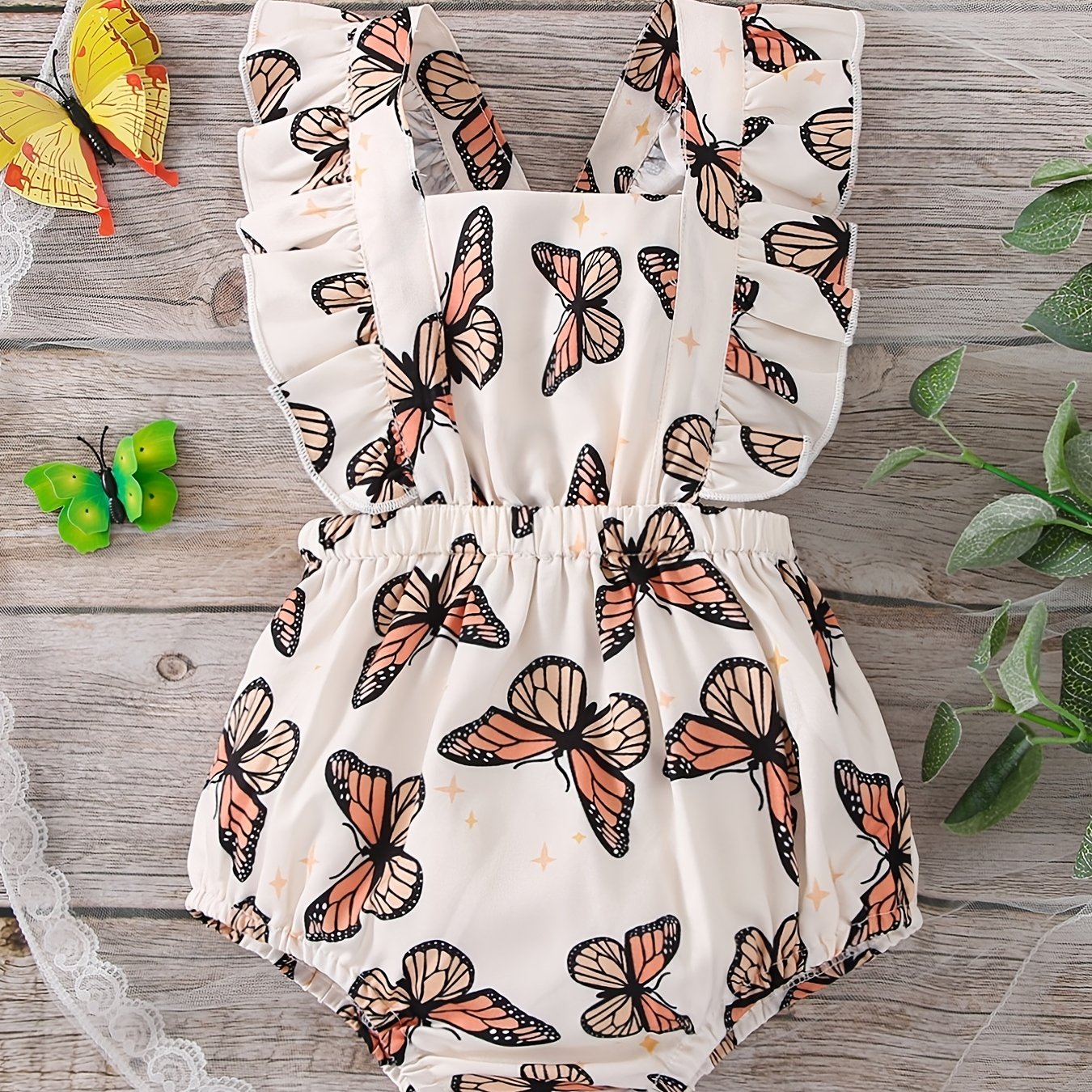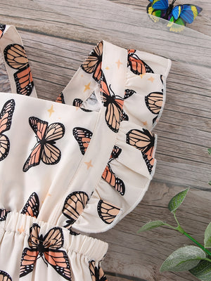 Baby Girls Butterfly Print Ruffle Trim Onesies Romper