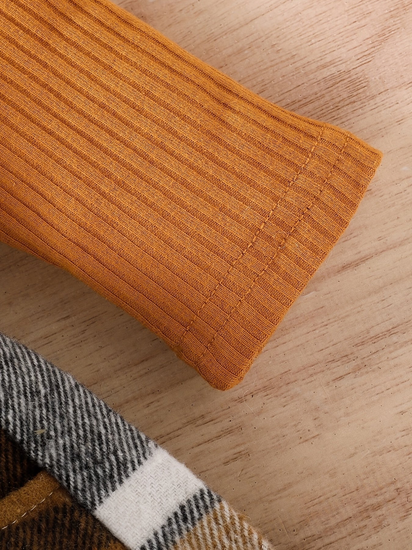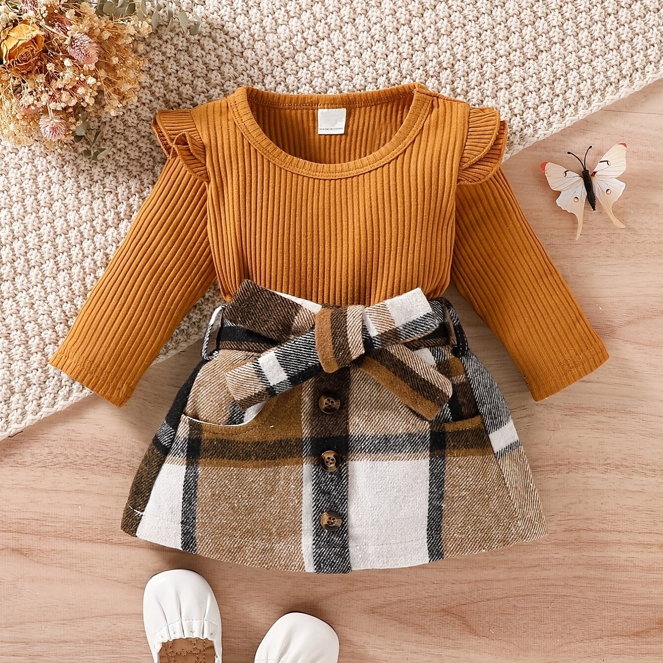 Home Baby Girls Ruffled Knitted Sweater & Plaid Bow Skirt Set For Winter