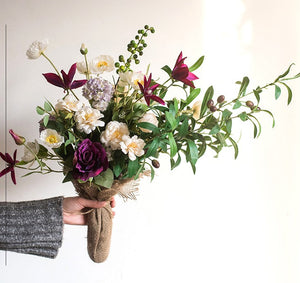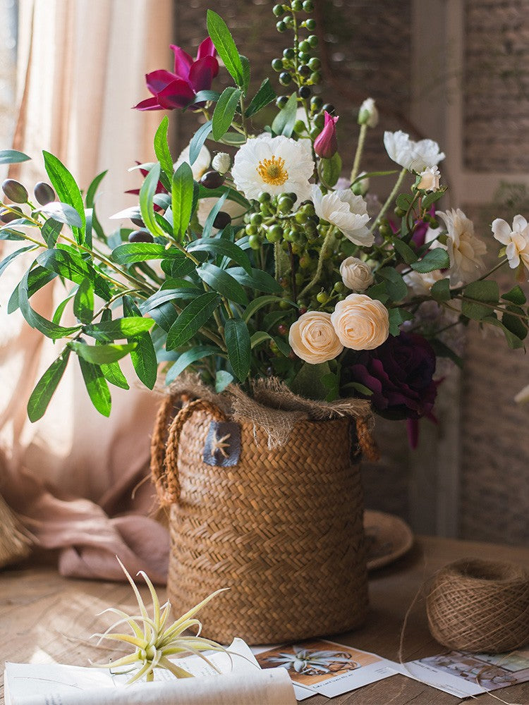 Clematis. Olive Branch. Sweet Alyssum. Corn poppy. Cranberry. Iceberg Rose Flowers. Unique Flower Arrangement for Home Decoration. Beautiful Artificial Flowers for Living Room