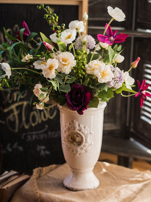 Clematis, Olive Branch, Sweet Alyssum, Corn poppy, Cranberry, Iceberg Rose Flowers, Unique Flower Arrangement for Home Decoration, Beautiful Artificial Flowers for Living Room