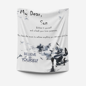 Allow the "Believe in Yourself" blanket to cocoon you in its warmth, embracing you physically and emotionally, and encouraging you to embrace your own potential. Let it serve as a comforting reminder that you are capable, worthy, and deserving of all the success and happiness that awaits you.