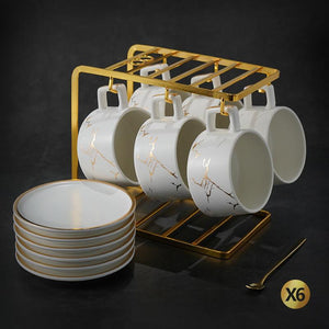 Each set includes 1* coffee cup. 1*stirring spoon and 1 saucer. 7.4 ounce (220ml) capacity ceramic coffee mugs. perfect for serving espresso. cappuccinos. lattes or tea. It has enough space for coffee with milk bubbles. avoiding spilling.