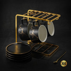 Black Coffee Cup, White Coffee Mug, Tea Cup, Ceramic Cup, Coffee Cup and Saucer Set