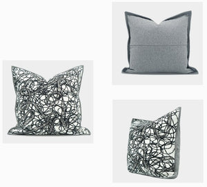 Simple Throw Pillow for Interior Design, Large Modern Sofa Pillow Covers, Black Lines Contemporary Square Modern Throw Pillows for Couch