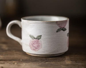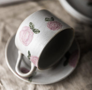 Cappuccino Coffee Mug, Rose Flower Pattern Coffee Cup, Tea Cup, Pottery Coffee Cups, Coffee Cup and Saucer Set