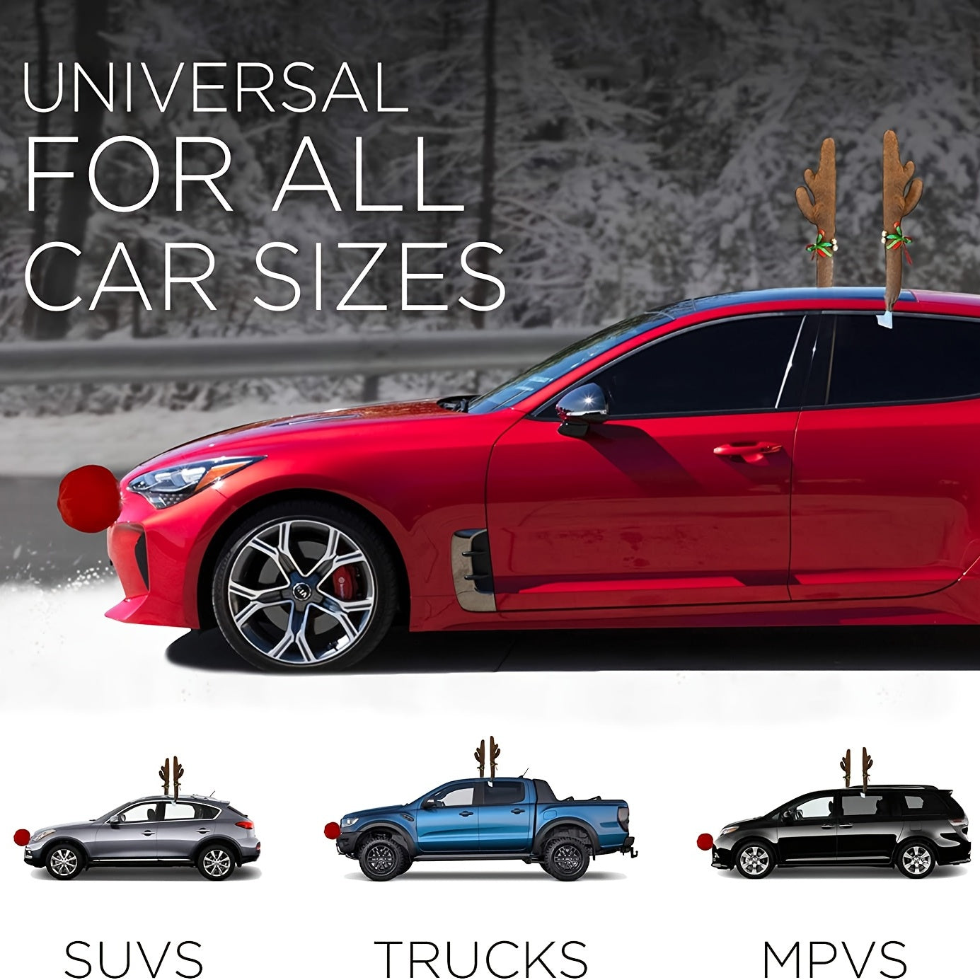 Car Christmas Reindeer Antler Decorations, Christmas Car Decor With Jingle Bells, Rudolph Reindeer Red Nose, Auto Accessories Decoration Kit Gifts