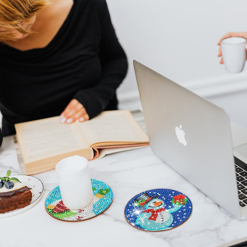 Home Christmas 6 PCS Diamond Painting Coasters Kits, DIY Snowman Diamond Art Coaster Kits with Holder, Diamond Dot Coasters Gifts for Adults