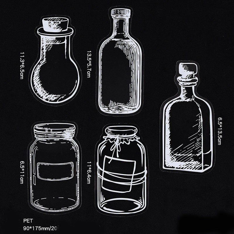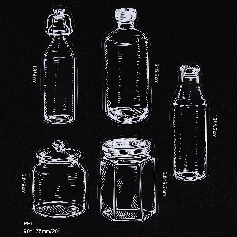 Scrapbook sticker set - 4 sheets including 5 models, PET transparent handbook decorative stickers DIY decals for handmade scrapbook planner album diary frame notebook diary