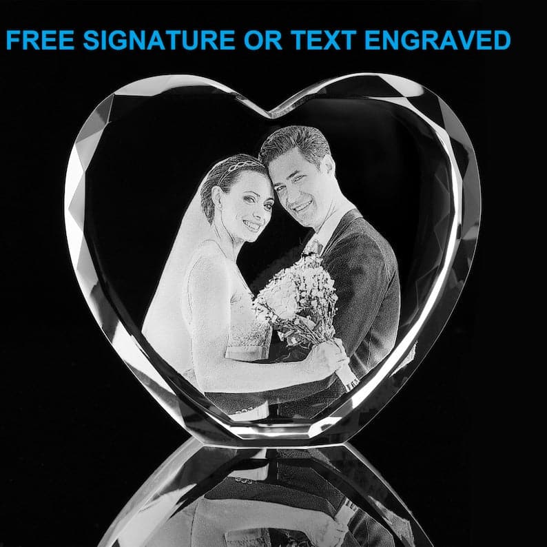 Custom 3D Crystal Photo Gifts, Personalized Crystal 3D Photo Heart, Laser Engraved 3D Crystal Picture, Custom Wedding Gift, Anniversary Gift